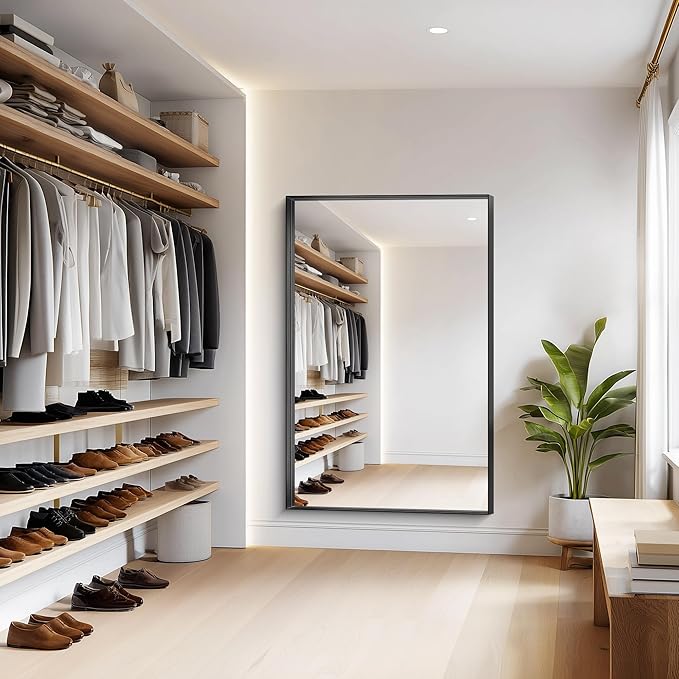 - Sleek & Sturdy Aluminum Alloy Frame: This elegant black bathroom mirror features a lightweight yet durable aluminum alloy frame, designed to resist deformation, chipping, and corrosion. The slim metallic profile adds a modern touch, elevating your space with a luxurious finish. Perfect as a wall-mounted or hanging mirror, it combines strength, style, and longevity.