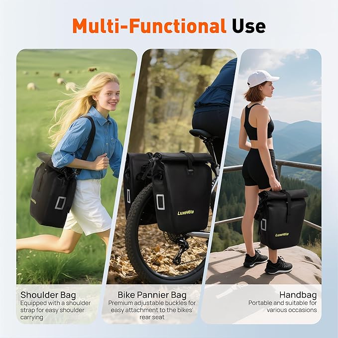 - Multi-Functional Carry & Protected Delivery: Beyond the bike, it transforms into a convenient shoulder bag (strap included) or a hand-carry bag (handle included). Each bike pannier bag is individually packaged in a dedicated color box to guarantee pristine condition upon arrival.
