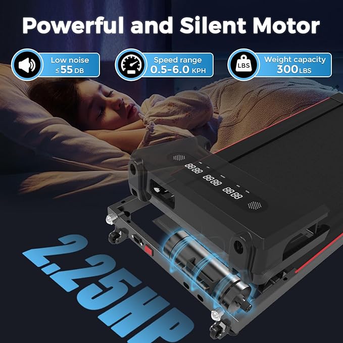 - P01-P12 Programs and Easy to Move: Start the walking pad treadmill and enter the "P" program directly, accelerating fat burning through preset variable speed running programs. The built-in transport wheels make this under desk treadmill easy to move and store, saving space.