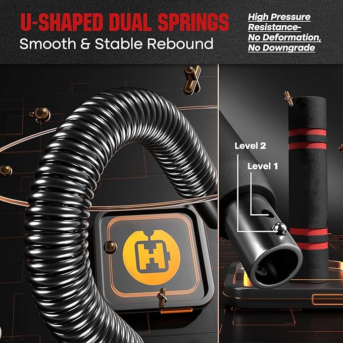 - 【Adjustable Resistance】Built for both beginners and pros, this arm trainer features adjustable resistance from 40 to 100 lbs. Easily change the resistance to suit your fitness level or progression goals, this adjustable spring workout bar is ideal for personal strength training.