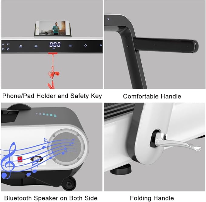 - ๐๐ผ๐๐ฏ๐น๐ฒ ๐ฆ๐ต๐ผ๐ฐ๐ธ ๐๐ฏ๐๐ผ๐ฟ๐ฝ๐๐ถ๐ผ๐ป ๐ฆ๐๐๐๐ฒ๐บ: Equipped with damping and silicone diamond systems, this under desk treadmill with 5-layer shockproof and anti-slip running belt offers better protection for knees and joints. In Addition, the 4.75hp powerful motor ensures a quiet and smooth running. Please do not use the treadmill on carpet to avoid overheating.