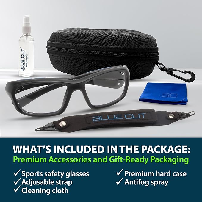 - ☑️ Impact-Resistant Polycarbonate Lenses – Prescription-Ready – Tough polycarbonate lenses provide full protection from sudden impacts, fast-moving balls, and accidental bumps. Designed for high-speed sports, and easily replaceable with prescription lenses for custom vision support.