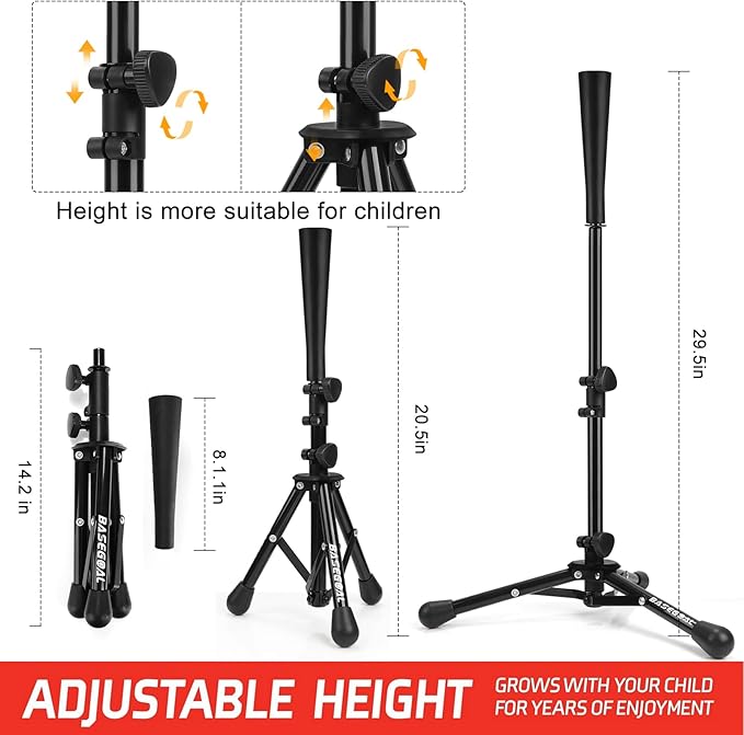• 2.【Adjustable Height】kids baseball tee can adjustable Height adjustment from 20.5" to 29.5". Easy twist and lock height.