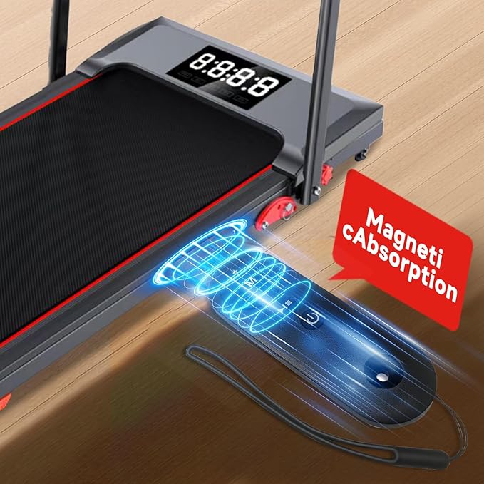- 【Convenient Magnetic Remote Control】: Effortlessly adjust settings mid-workout with the wide-range magnetic remote. Keep it securely attached to your folding treadmill or mini treadmill for hands-free convenience.