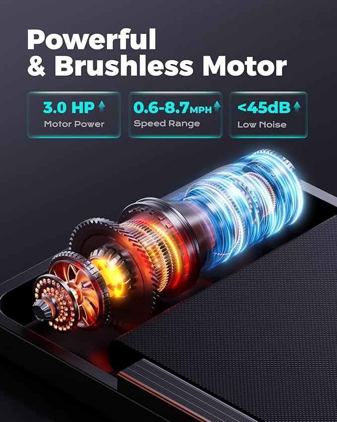 - Quiet & Powerful 3.0HP Brushless Motor: Advanced brushless motor delivers smooth, quiet, and reliable performance for walking and running at home. Built to last with low maintenance