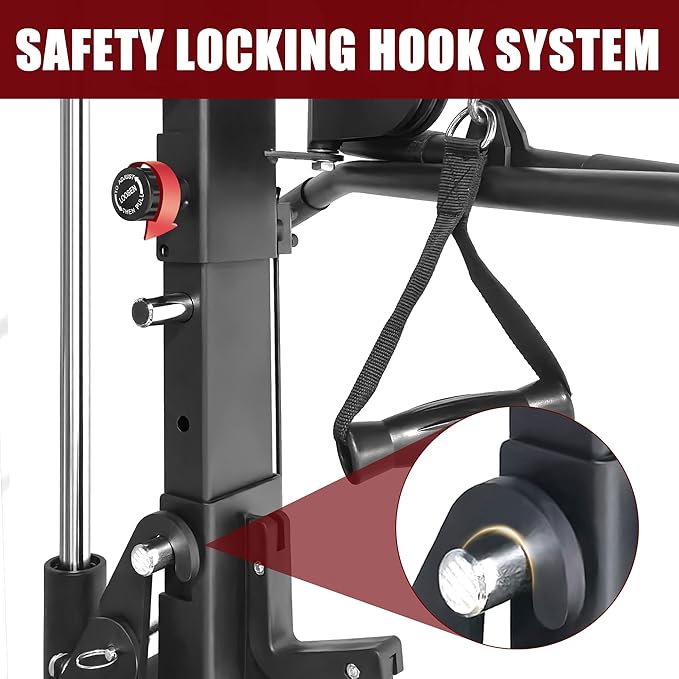 - All-in-One Home Gym System: Transform your home gym with a multifunction Smith Machine that integrates a power cage, cable pulley system, lat pulldown, dip handles, landmine base, and more. Designed for total-body workouts from squats to flys—all in one compact footprint.