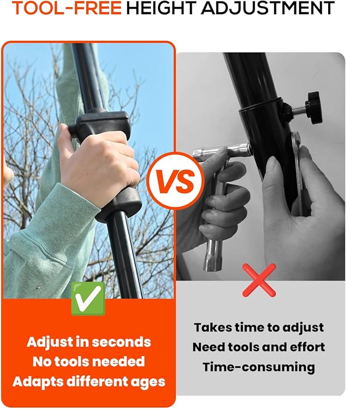 - Perfect Family Basketball Hoop - This adjustable basketball hoop easily changes height from 4.8FT to 10FT with no tools needed. Kids(4.8FT-5.8FT) can safely practice shooting, youth players (6.3FT-8.0FT) develop proper shooting form, and teens/adults (8.5FT-10.0FT) can train for regulation game play. Designed for driveways, parks, and courts, it brings years of fun and healthy competition to your home