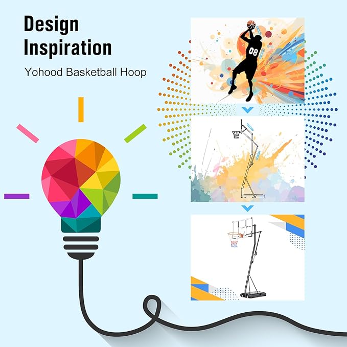 - [Portable & Easy to Move] Equipped with 2 durable built-in wheels, this portable basketball hoop can be tilted and rolled to your backyard, driveway, or even indoors. Enjoy basketball games anytime with family and friends